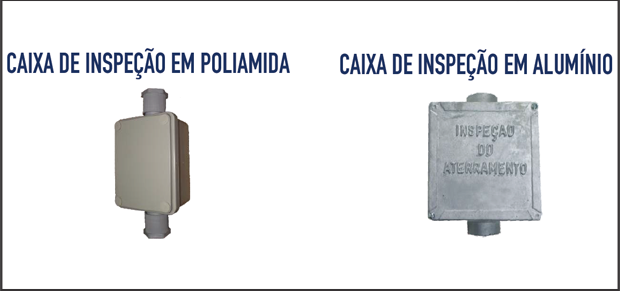 Em poliamida bocal 1" ou em alumínio 160 x 160 x 70mm bocal 1" interno e 2" externo. E caixa tubo cimento