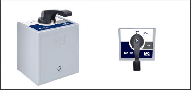Chave de transferência (ou reversão de linha) manual, para comutar o funcionamento de dois motores separadamente ou comutar a alimentação do sistema (concessionária-gerador).