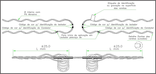 O Laço Preformado Lateral Duplo (LPLD) destina-se à amarração do condutor de alumínio CA/CAA lateralmente no “pescoço” do isolador de pino em cruzetas duplas. Fabricado a partir de fios de aço galvanizado ou aço galvanizado revestido de alumínio, o qual deve ser indicado com as letras \"RA\" após o código principal. Pode também ser fabricado em aço galvanizado revestido de cobre, recebendo as letras \"RC\" após o código principal, ou em liga de cobre, indicando o número 3 no lugar do primeiro dígito. Recebe na parte interna um material abrasivo para melhorar o agarramento sobre o cabo. É fornecido com dois coxins de elastômero.