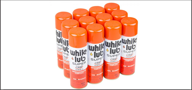 WHITE LUB SUPER, produto líder de mercado em seu segmento, possui uma formulação especial tendo como base o Éster de Óleo de Soja Degomado que lhe atribui propriedades únicas. Após a aplicação cria uma película protetora sobre as superfícies, protegendo contra ferrugem e oxidação. Seu poder de aderência cria uma barreira perfeita contra a umidade. A ação penetrante foi especialmente elaborada para o produto desengripar com muita facilidade porcas e parafusos, reduzindo tempo, esforço e custo nas manutenções de máquinas e equipamentos em geral. Desengripante com alto poder penetrante de rápida ação. Age como antioxidante eliminando a água da superfície. Forma um filme aderente, diminuindo o atrito e o desgaste entre as peças.