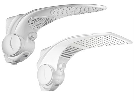 Ducha Evolution Master e Turbo: Se destaca pelo tamanho de seu espalhador que proporciona um banho com muita água e pelo comando de temperaturas ao alcance das mãos.