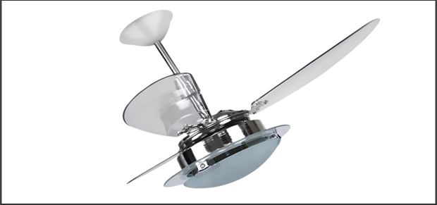 Linha moderna com design arrojado, apresenta produtos mais encorpados e lustres refinados, trazendo cores que acompanham as tendências de decorações somando um toque de beleza e elegância, sendo peças indispensáveis para decoração e ventilação de qualquer ambiente.