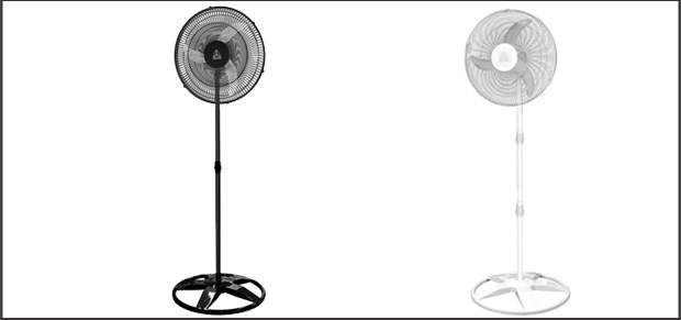 Hélice: 3 pás finas; Cores: branco ou preto; Controle de velocidade rotativo; RPM: 1.400; Vazão: 90m³/min; Consumo: 0,16 kWh; Motor: 145W; Voltagem: monovolt.