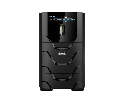 É estabilizado, possui seleção automática de voltagem, partida em bateria, engate rápido para módulo externo, sensor de sobrecarga e carregador inteligente.