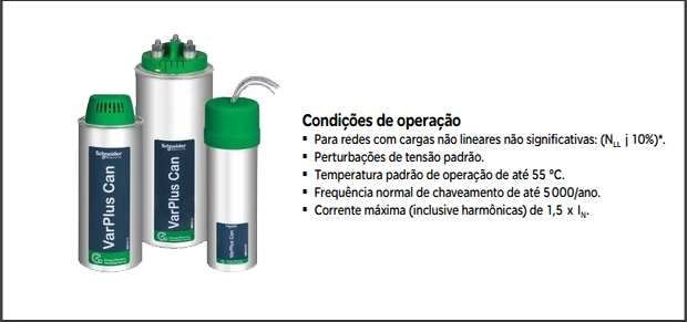 São utilizados para construir bancos de capacitores para correção do fator de potência em redes de baixa tensão. Através da diferente combinação de montagem, permitem abranger todas as potências nominais de que necessita, dependendo da tensão, frequência e nível de conteudo de harmônicas da rede. Construído internamente com três elementos capacitivos monofásicos montados em uma disposição otimizada. Cada elemento capacitor é fabricado com filme de polipropileno metalizado como dielétrico, possuindo características como metalização reforçada da borda e perfis especiais que melhoram as propriedades de “autorregeneração”