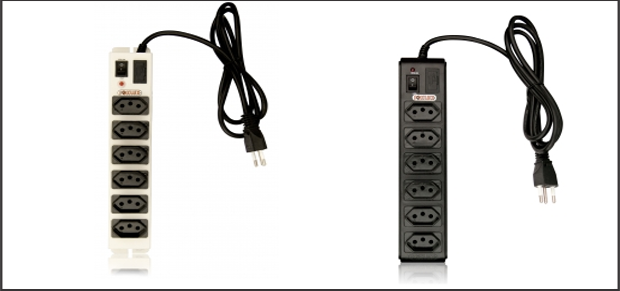 Os filtros de linha protegem aparelhos eletrônicos, de informática e telefônicos contra surtos de energia, ruídos de rede provenientes de descargas atmosféricas e picos de tensão, preservando e aumentando a vida útil dos equipamentos. Fabricados em metal ou plástico possuem de 3 à 6 saídas no novo padrão determinado pelo INMETRO.