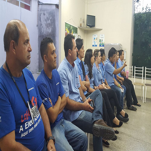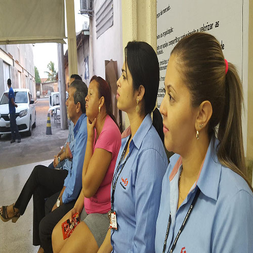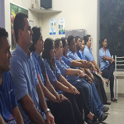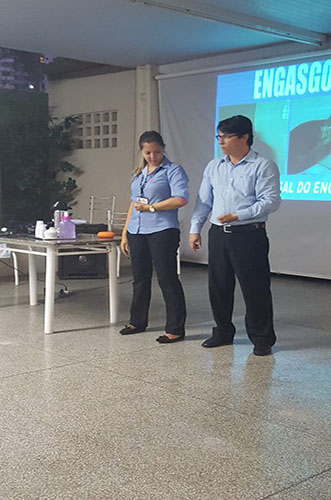 Colaboradora Paula aprendendo a manobra de Heimlich para desengasgar
